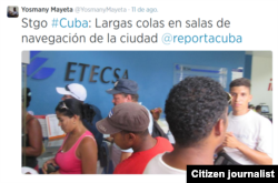 Las Salas de navegación abiertas en Santiago de Cuba no son suficientes ante la creciente demanda de servicios de la población, destaca el periodista independiente Yosmany Mayeta residente en la localidad.